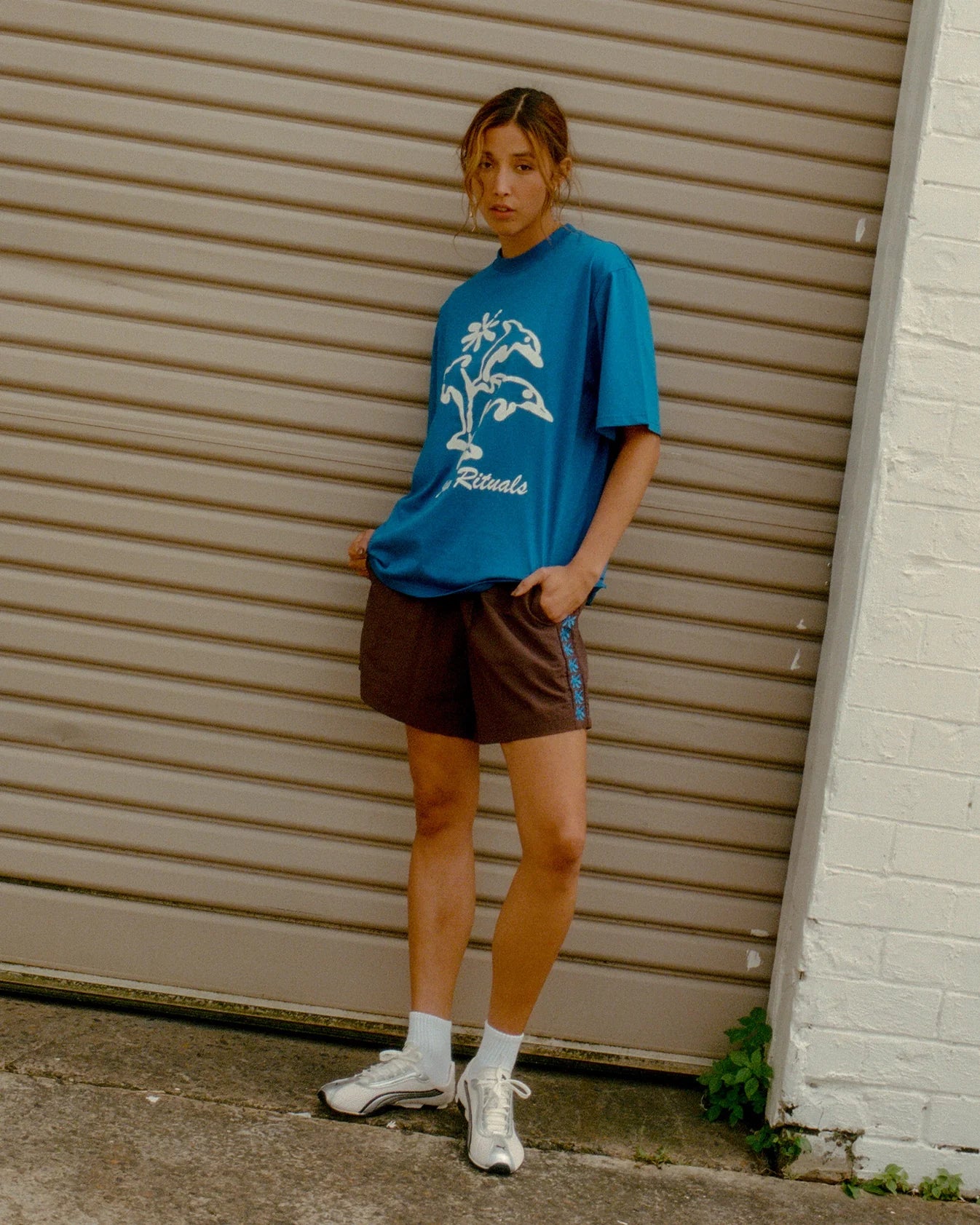 The Dolphin tee, reminiscent of a nostalgic holiday souvenir which sparks fond memories of fun, relaxation and restoration every time you wear it.