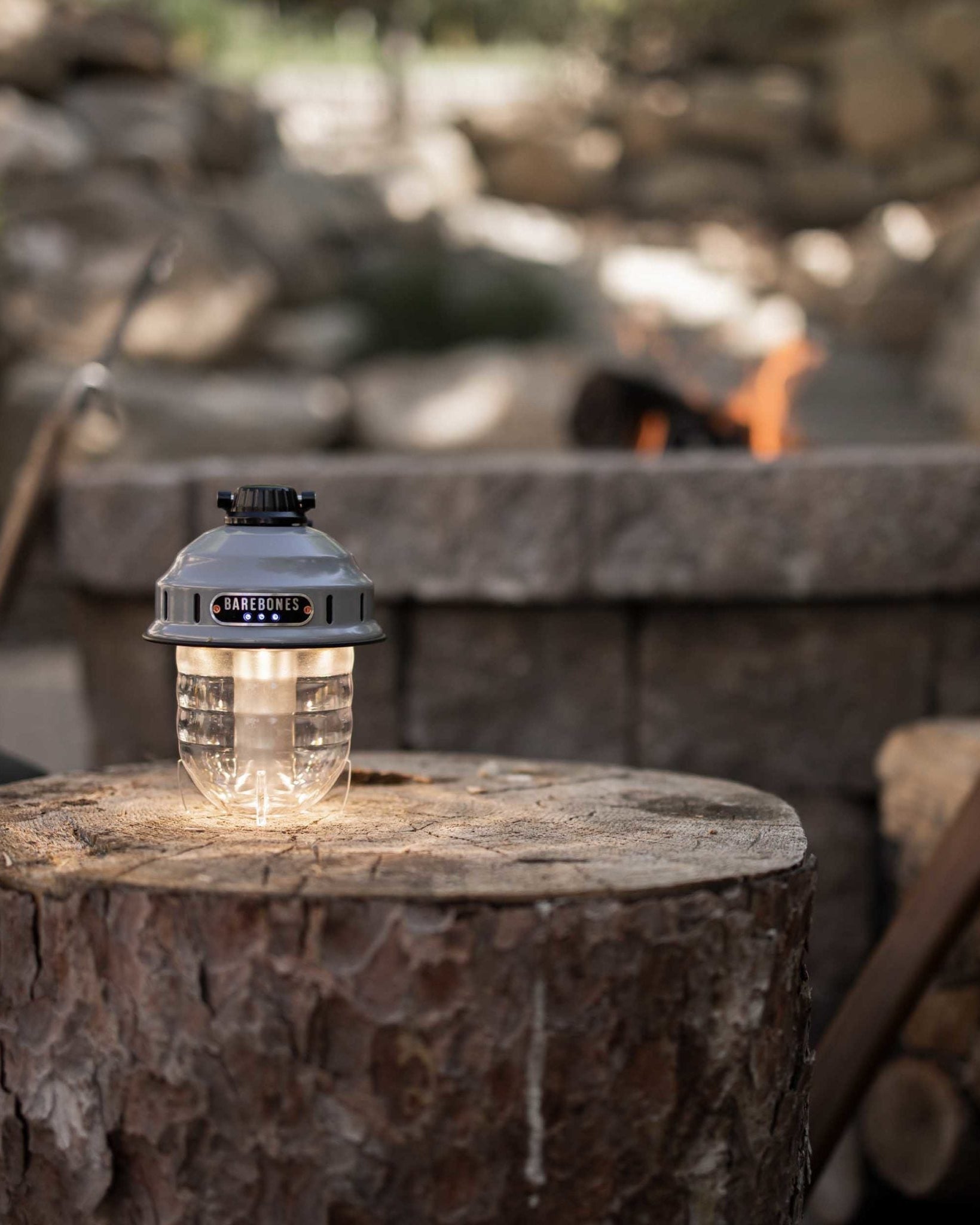 Our Barebones Beacon Hanging Light comes with a smooth dimming feature that allows you to completely brighten your surroundings or simply set the mood. This portable light easily hangs with its carabiner top or stands on its sturdy base. The Beacon comes with an attached 9-inch USB cord and an additional 35-inch cord for its rechargeable battery—which lasts 200+ hours on low or three hours on high. And thanks to a convenient battery life indicator, you'll never be left in the dark.