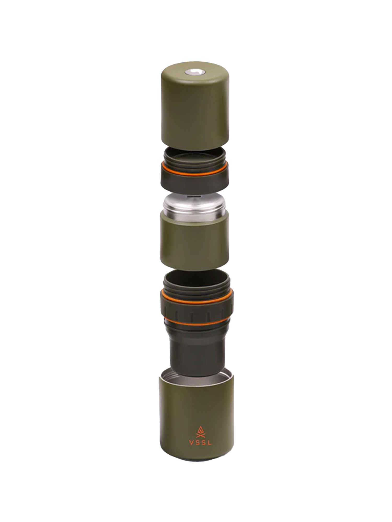 The Nest Pour Over Kit incorporates double walled stainless-steel construction with a BPA Free lid and storage connector into a rugged, portable pour-over coffee brewing system. Dual threads enable the 5-piece kit to assemble into one compact unit perfect for travel, overlanding and other outdoor endeavors. When disassembled, the Kit delivers two 10oz mugs, one splash proof lid, a pour-over dripper, and a nesting storage connector that allows the system to be compatible with the Java G25 Grinder (not included). This holistic coffee brewing system delivers a premium brewing experience. Anywhere. Everywhere.