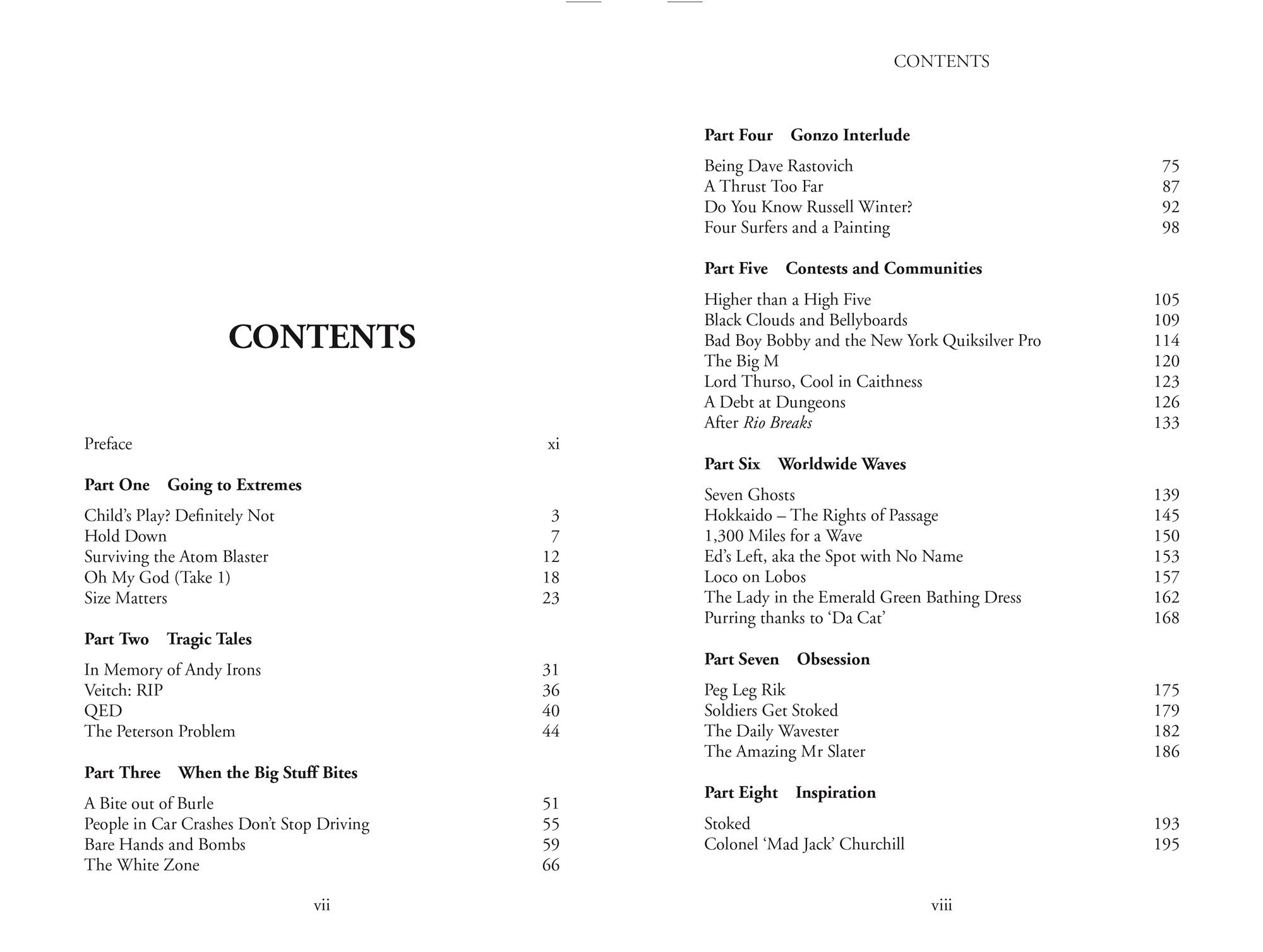 This eclectic mix of surfing stories has something for everyone, from classic tales of monster waves and epic battles to stories of when life among the breakers goes wrong. There are accounts of death and disaster, as well as bravery and triumph. The bizarre and the extreme rub shoulders with perfect breaks and beautiful beaches.