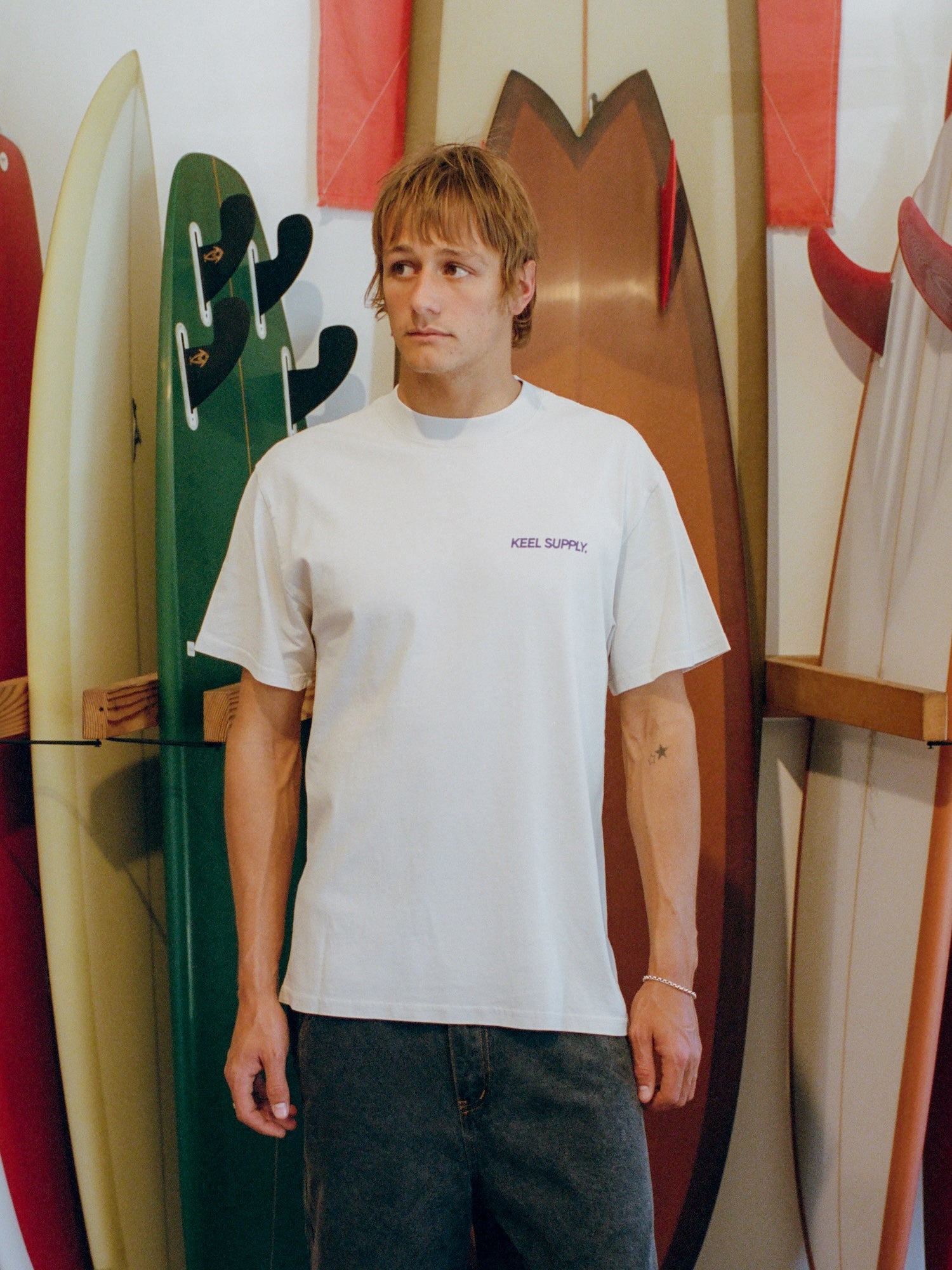 Meet your new everyday essential. The Keel Solis Tee in Bone pairs premium 100% carded cotton with serious staying power—that hefty 240 GSM weight means it's built to last. The garment dyed finish ensures no two tees are exactly alike, giving you a piece with genuine character. Dropped shoulders and a relaxed cut keep things comfy, while reinforced wide neck ribbing handles whatever you throw at it. Lounge, explore, live—this tee's ready for it all and only gets better the more you wear it.