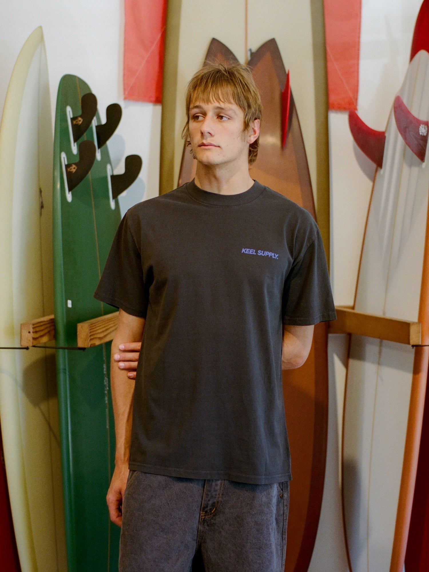 Meet your new everyday essential. The Keel Solis Tee in Washed Black pairs premium 100% carded cotton with serious staying power—that hefty 240 GSM weight means it's built to last. The garment dyed finish ensures no two tees are exactly alike, giving you a piece with genuine character. Dropped shoulders and a relaxed cut keep things comfy, while reinforced wide neck ribbing handles whatever you throw at it. Lounge, explore, live—this tee's ready for it all and only gets better the more you wear it.