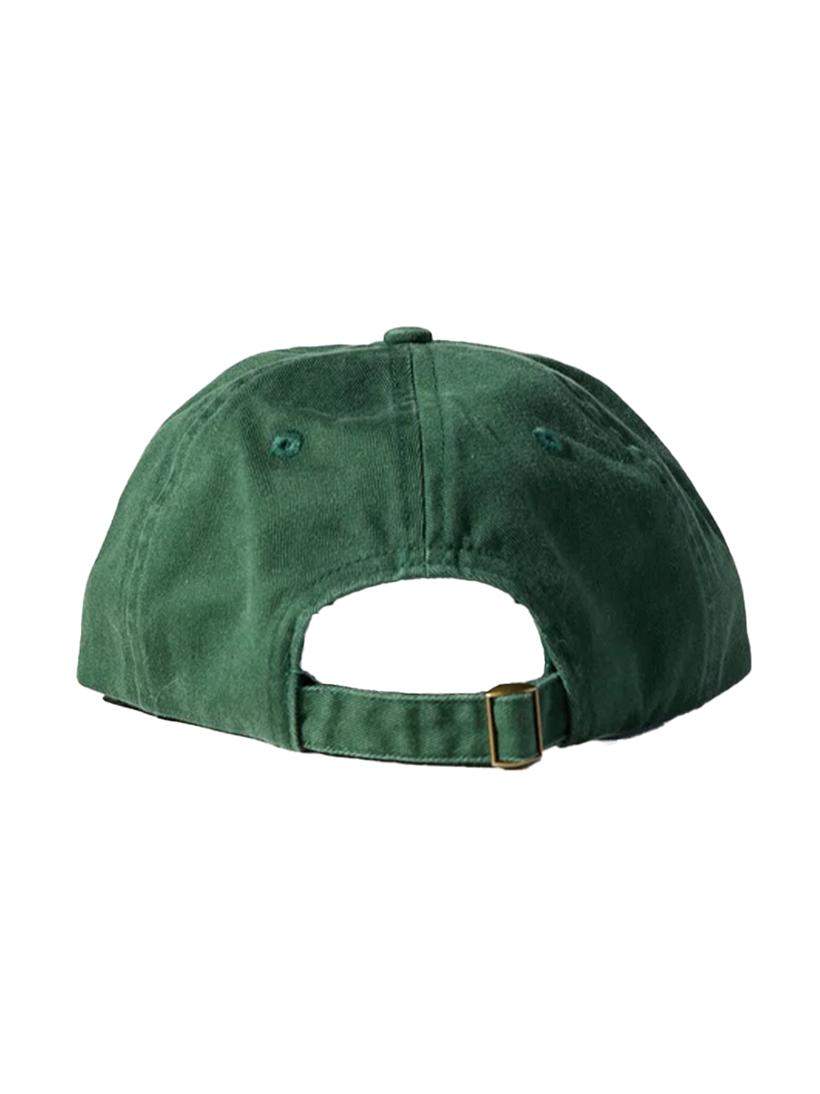 Meet your new go-to cap—a laid-back six-panel design with a soft, unstructured peak that keeps things low-key and effortless. Crafted from 100% recycled cotton twill and double enzyme washed, it's primed to develop its own one-of-a-kind vintage vibe as you wear it. The more you adventure in it, the more character it gains—your hat's story becomes uniquely yours. The adjustable material buckle with metal slider gives you a roomier, comfier fit than your standard snapback. With its relaxed profile, it's ideal for smaller head sizes or anyone who prefers a chill aesthetic. Works great for the groms too...perfect for ages five and up.