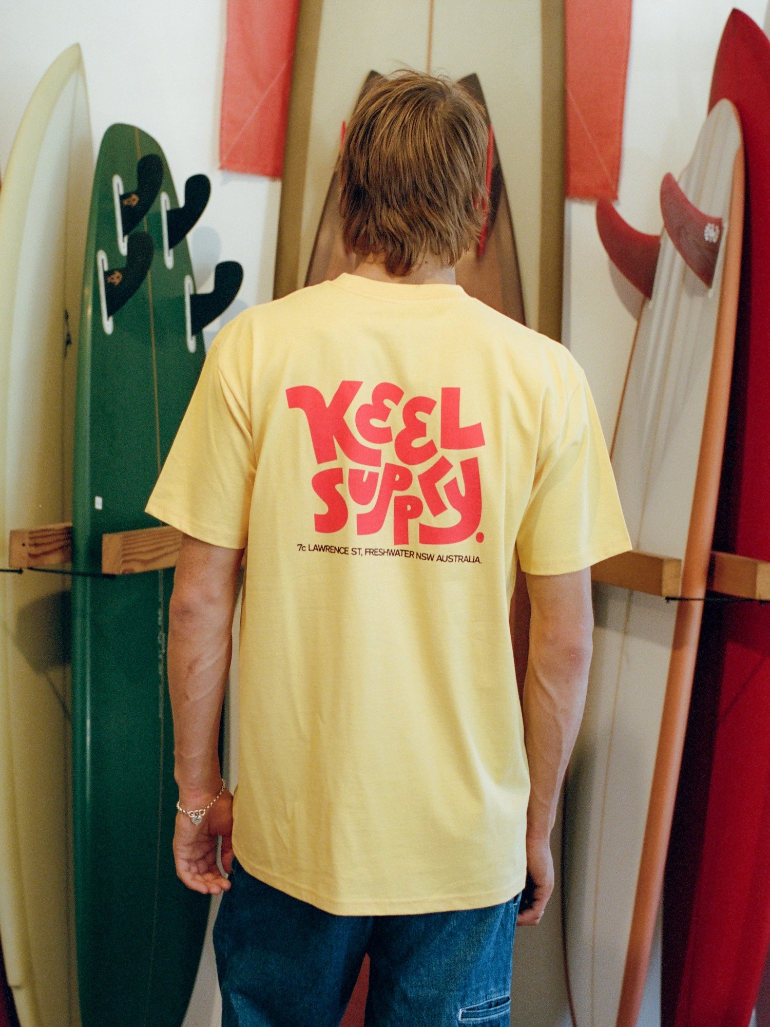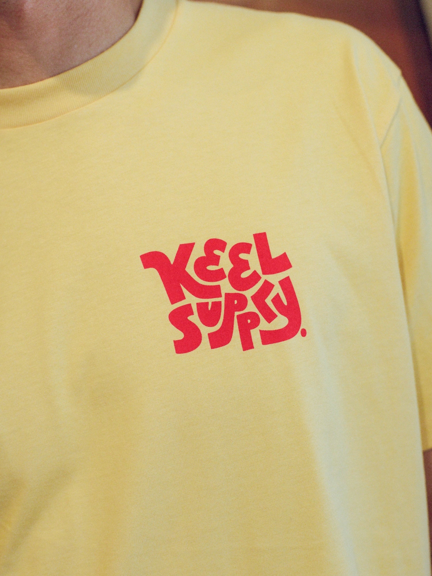 The new Keel Surf Logo Tee in Sunset combines premium construction with understated style. Engineered from 220 GSM combed cotton, this regular-fit garment features reinforced neck ribbing, stabilised side seams, shoulder-to-shoulder tape, and double-stitched hems for enhanced durability. The preshrunk fabric maintains dimensional stability through repeated laundering, eliminating typical shrinkage concerns. Finished with hand-printed local artwork, this tee delivers reliable performance and refined aesthetics for everyday wear.