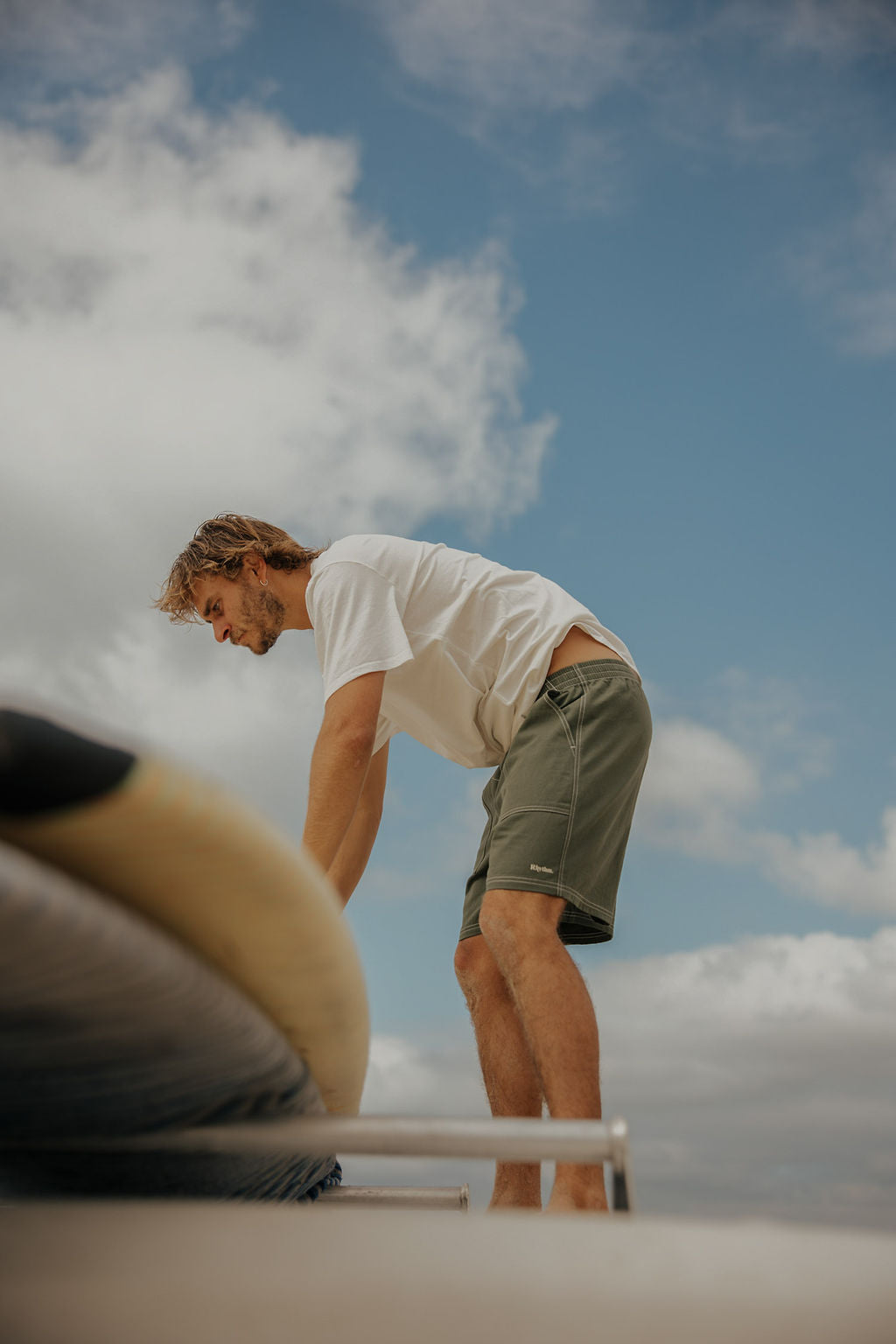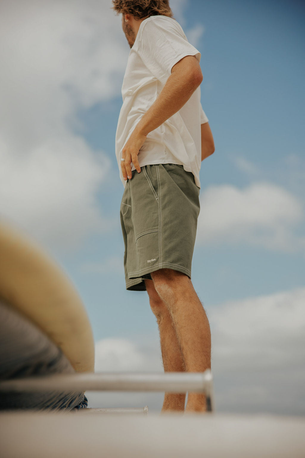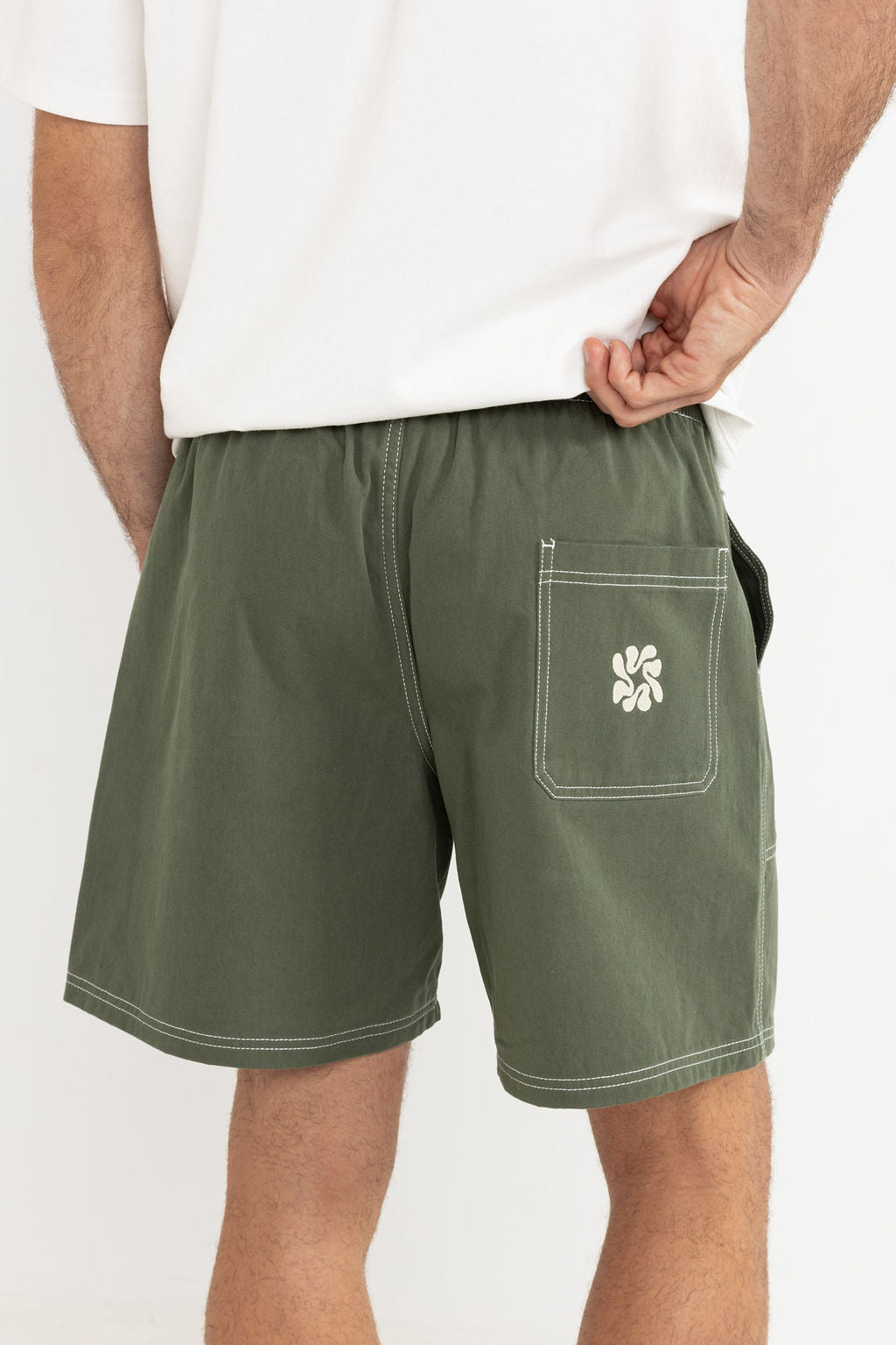 Designed for those who move between surf and street, the Floresta Jam in Forest features a baggy 19-inch outseam with a washed finish for a vintage hand feel. A comfortable elastic waistband, cotton drawstring, and functional pockets complete the design.