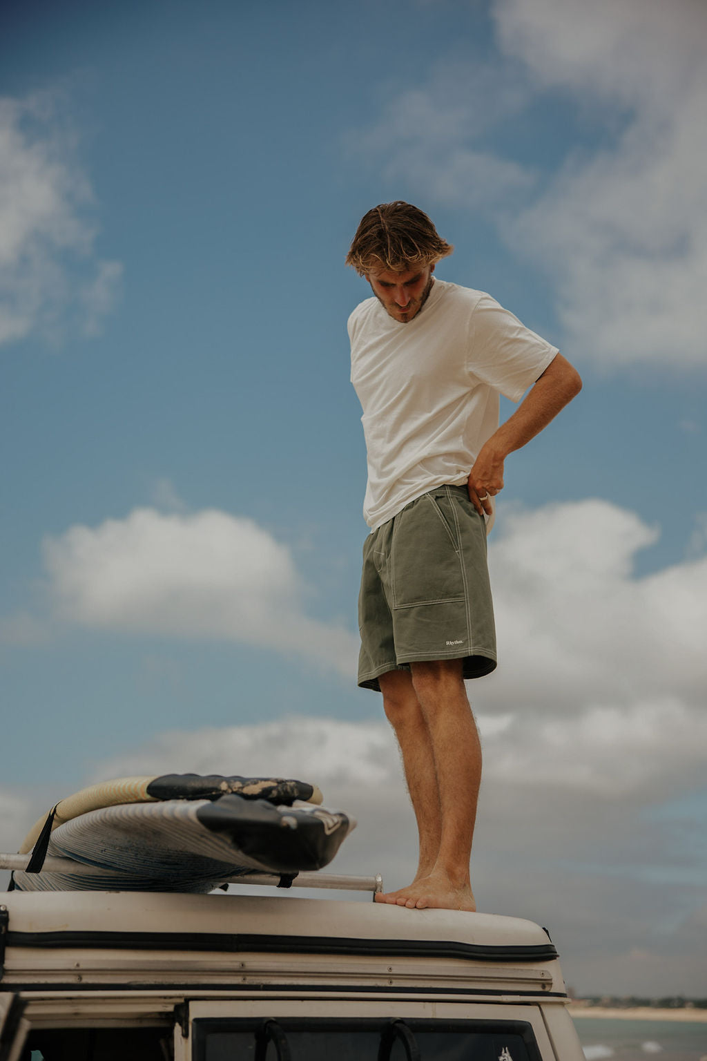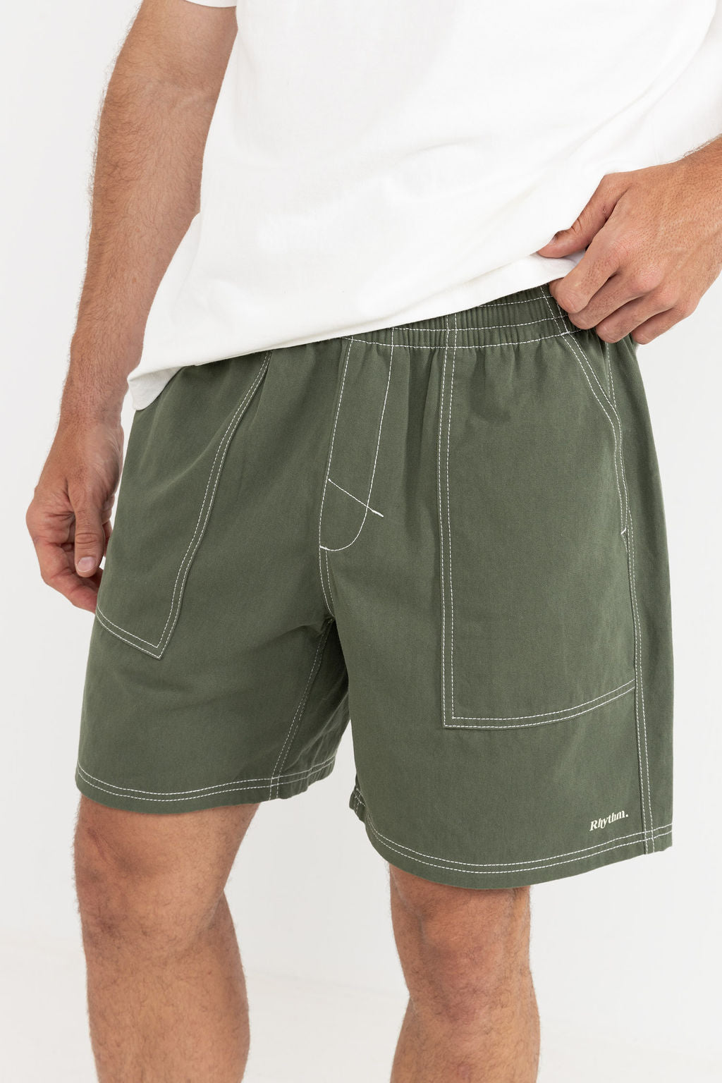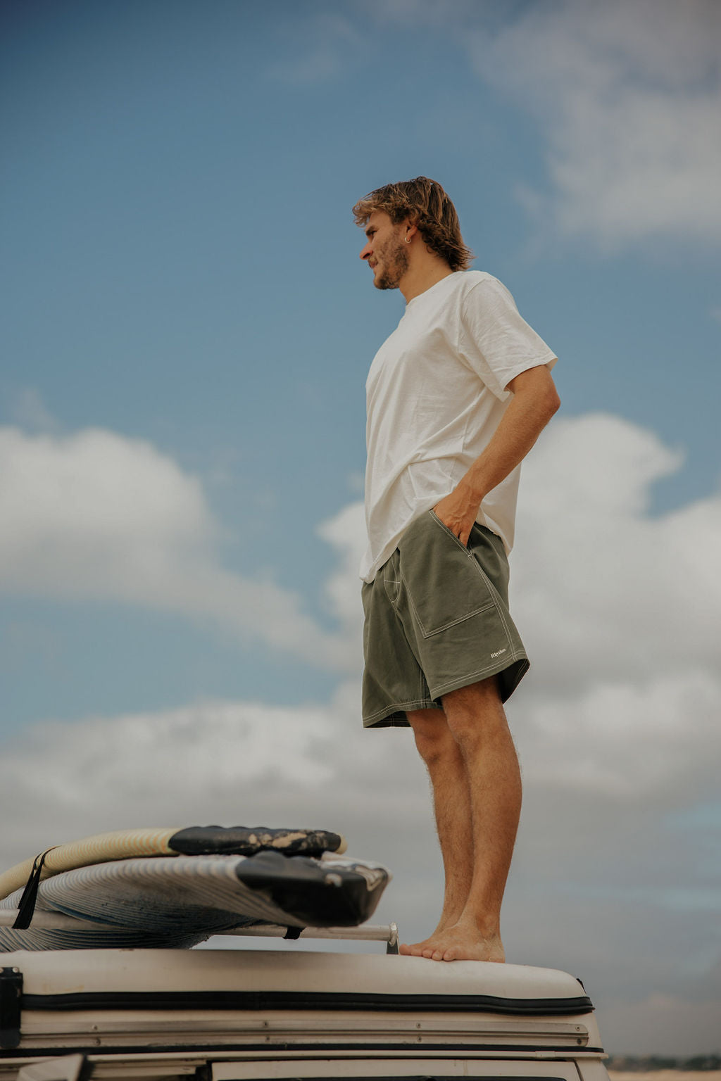 Designed for those who move between surf and street, the Floresta Jam in Forest features a baggy 19-inch outseam with a washed finish for a vintage hand feel. A comfortable elastic waistband, cotton drawstring, and functional pockets complete the design.