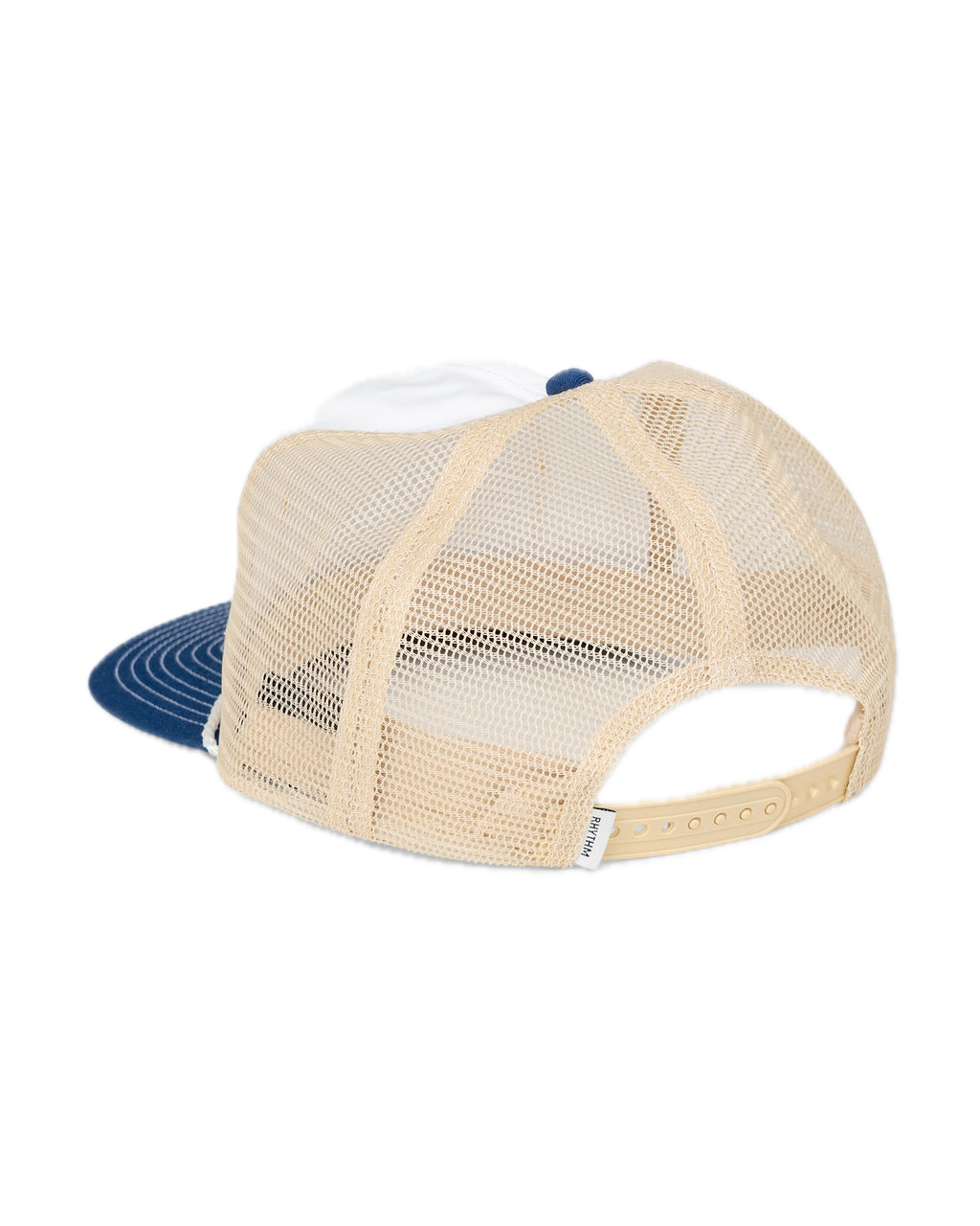 A classic trucker cap with contrast details. Features an embroidered patch appliqué, mesh back, and a rope detail on the peak for a timeless surf aesthetic. Adjustable snap-back closure ensures a perfect fit.