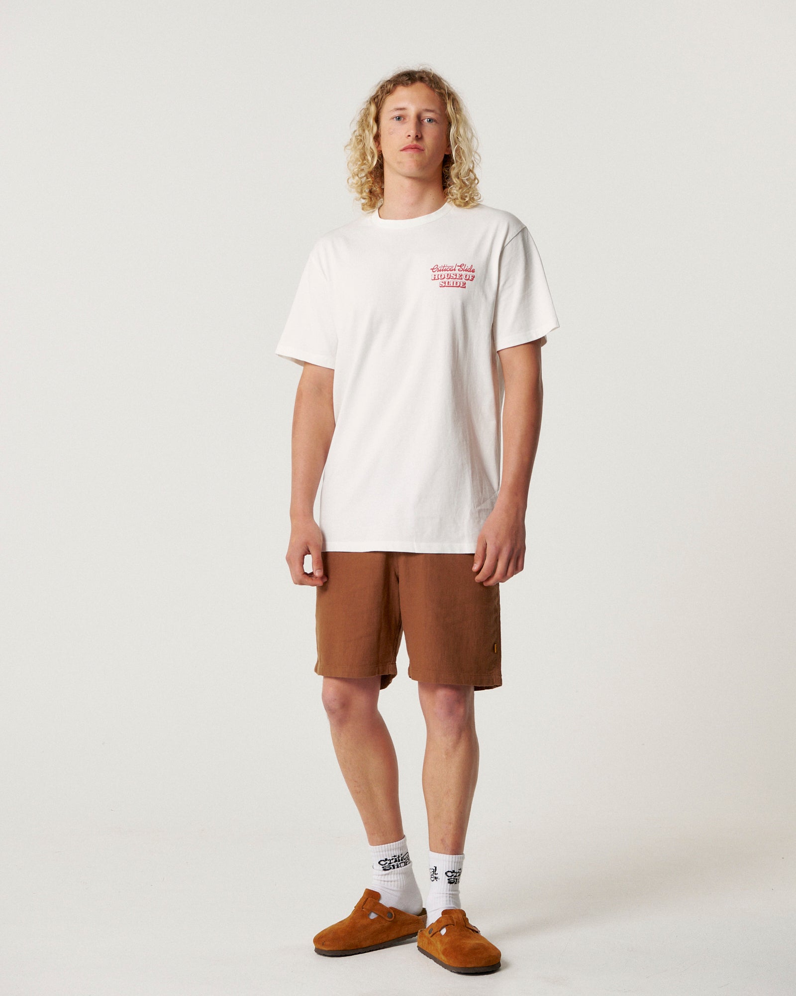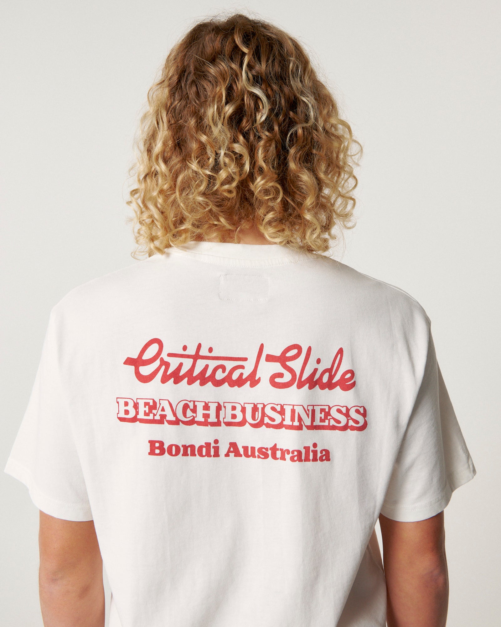 The Business Tee is built from a 230GSM cotton singles fabric for everyday wear with a bit of structure. Its a regular fit, slightly dropped on the shoulder for a looser, more airy feel.
