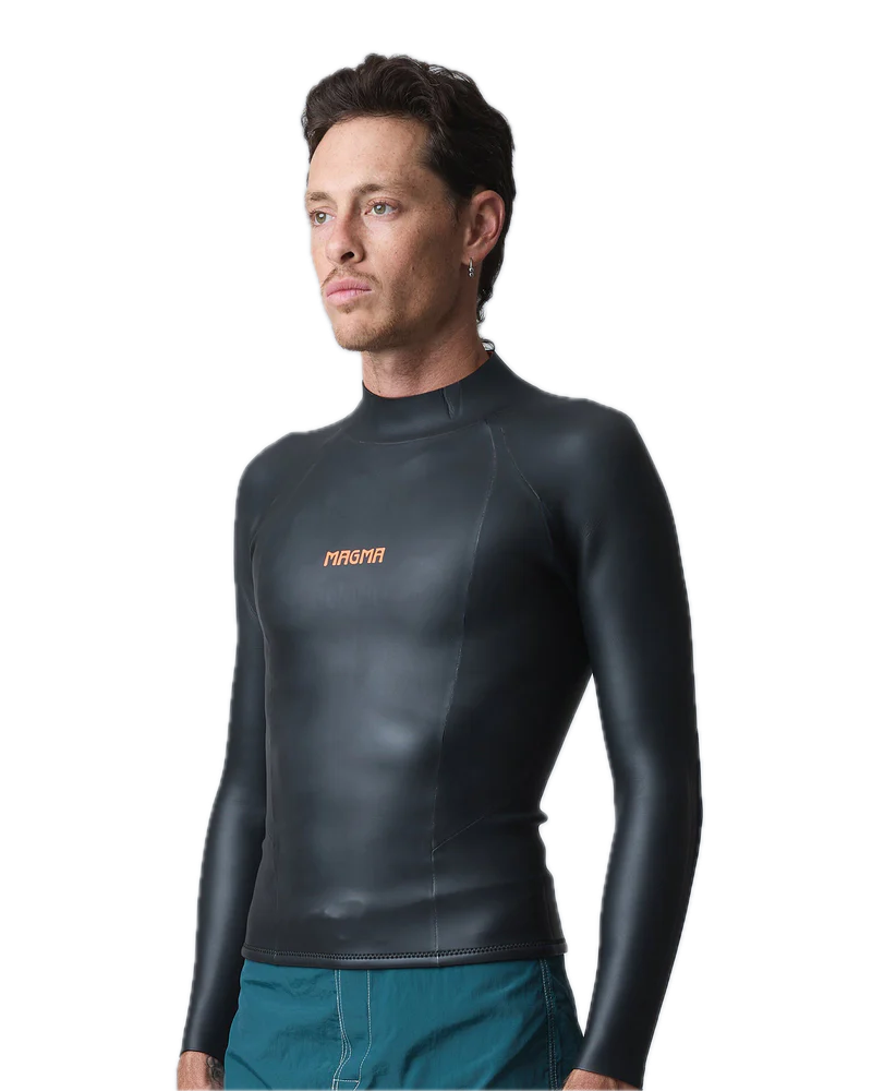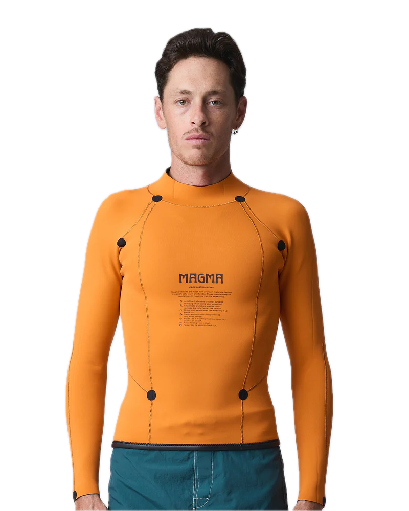 All MAGMA wetsuit jackets are made with 2mm Yamamoto, a limestone based rubber from Japan that is warmer, lighter and dries faster than petroleum-based neoprene. Yamamoto rubber has a lower carbon footprint and it lasts longer, meaning less suits in landfill and more time in the water.