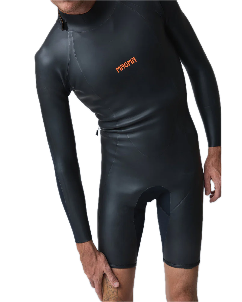 All MAGMA spring suits are made with 2mm Yamamoto, a limestone based rubber from Japan that is warmer, lighter and dries faster than petroleum-based neoprene. Yamamoto rubber has a lower carbon footprint and it lasts longer, meaning less suits in landfill and more time in the water.