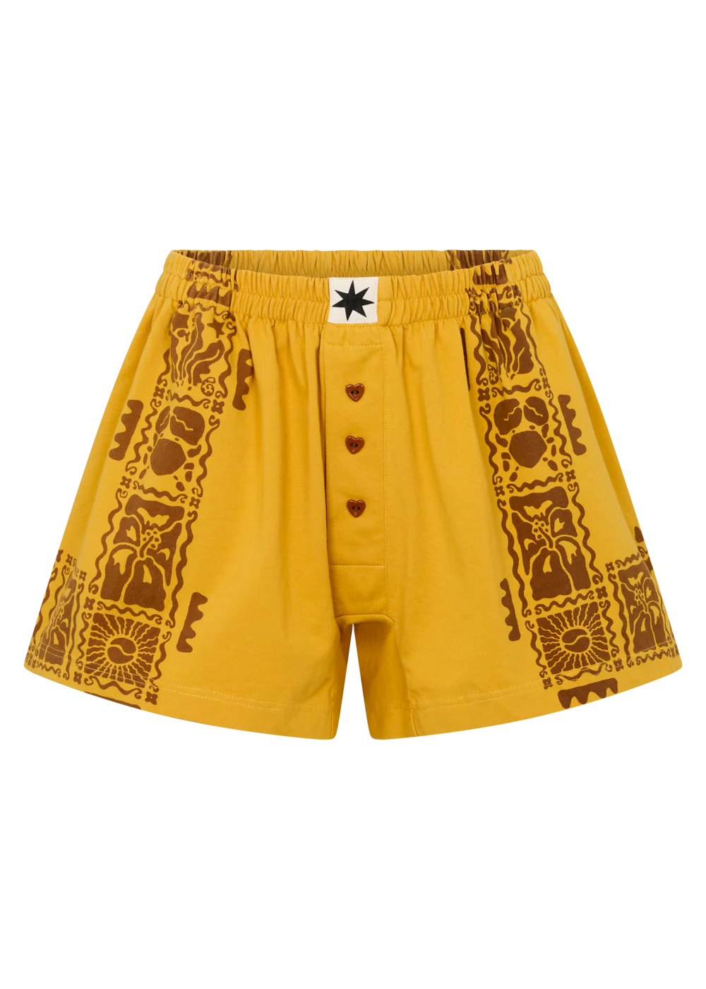 BASK IN THE SUNSHINE WITH THESE BRIGHT YELLOW BOXERS! DESIGNED FOR THE DREAMERS WHO CHASE GOLDEN SUNSETS AND LAZY POOLSIDE AFTERNOONS. PAIR WITH THE SUN CRAB ALEXIA SHIRT FOR A COORDINATED SET THAT CARRIES THE ENDLESS SUMMER SPIRIT INTO YOUR EVERYDAY WARDROBE.