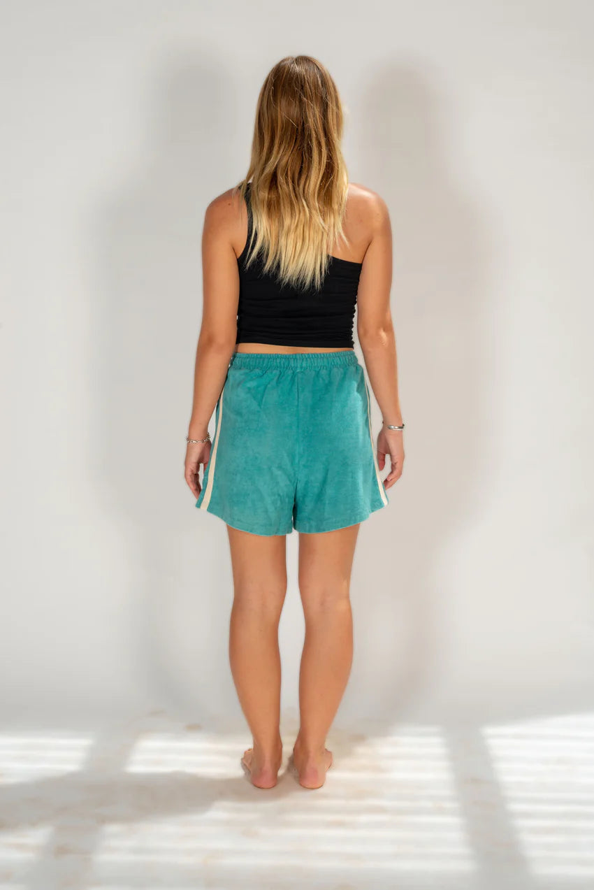 These shorts are the bomb. Inspired by the groove of the 70s- they're made of 100% cotton, with a sporty stripe on the side, an elasticated waist with a drawstring, and two side slits to add even more swing to your step. We think these shorts are perfect for any time of the day or night and are so excited to share them with you! Team them with any of our tees for a steeze inspired by past times.