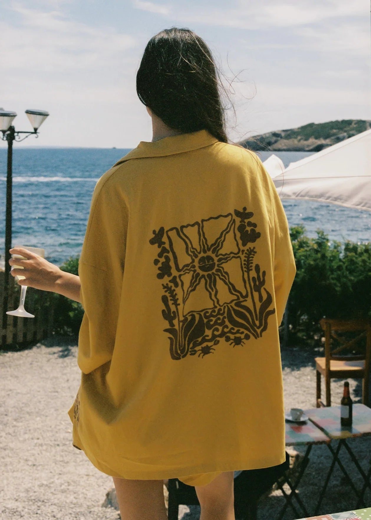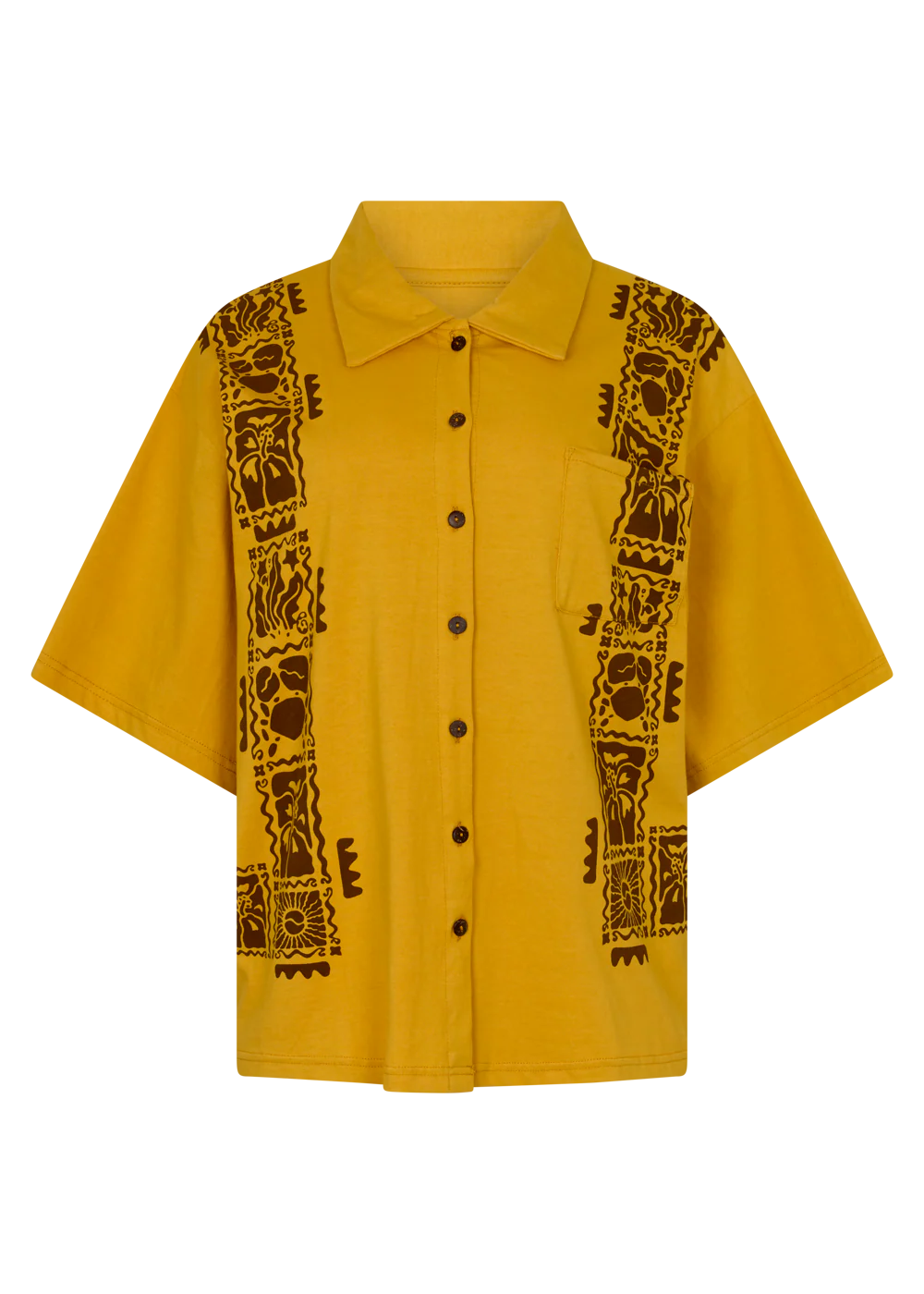 GOLDEN HOUR NEVER FELT SO GOOD IN THIS YELLOW NUMBER! CHANNELING MEDITERRANEAN AFTERNOONS, THIS OVERSIZED BUTTON-UP IS YOUR NEW GO-TO FOR EFFORTLESS VACATION DRESSING. INCLUDING AN INTRICATE SUN AND BOTANICAL PRINT AND A RELAXED SILHOUETTE. PERFECT FOR BEACH DAYS, APERITIVO HOURS, OR WANDERING COBBLESTONE STREETS. PAIR WITH THE SUN CRAB CHICA BOXER SHORT FOR A COORDINATED SET THAT CARRIES THE ENDLESS SUMMER SPIRIT INTO YOUR EVERYDAY WARDROBE.