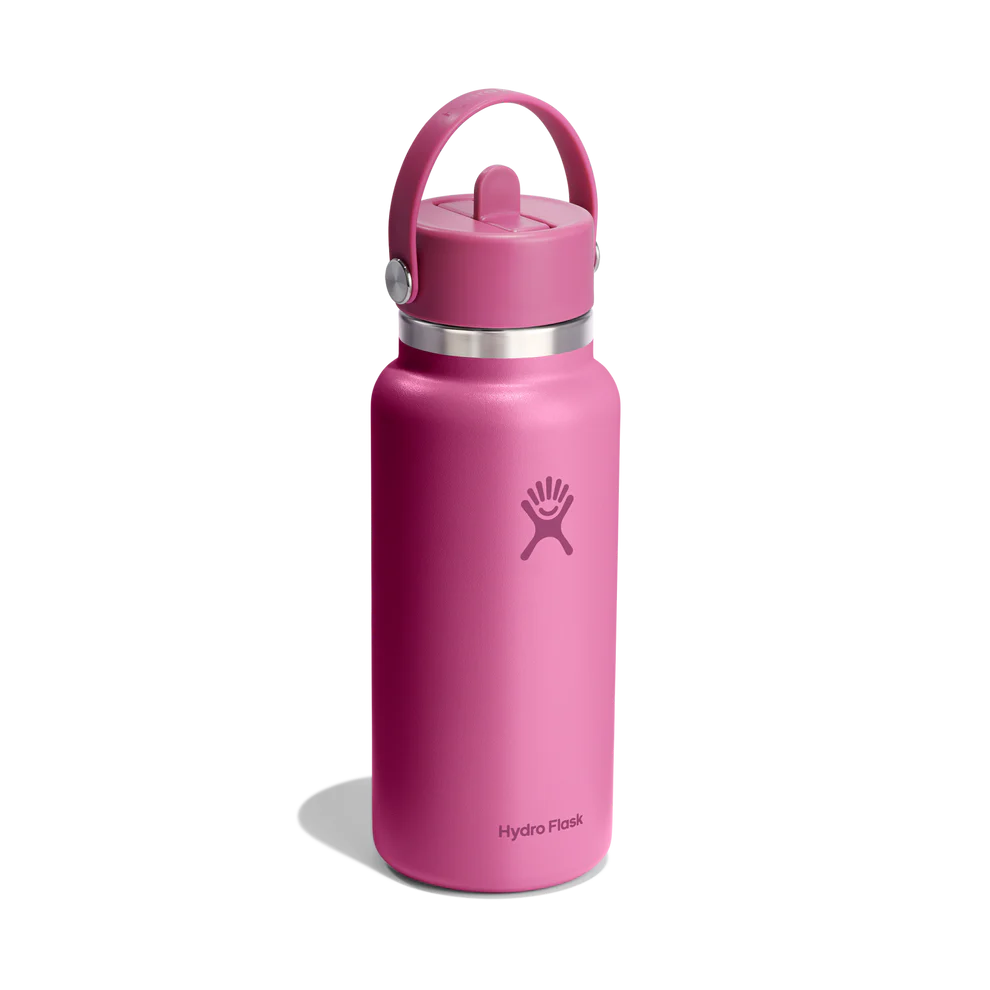 Flip it and sip it with the Hydro Flask 32 oz Wide Mouth Bottle With Flex Straw Cap. With a comfortable, flexible handle, the closeable, leakproof straw cap is easy to open and close with one hand, for on-demand hydration. Double-wall insulation keeps drinks cold up to 24 hours for cool refreshment. The insulated bottle easily fits ice cubes and is dishwasher safe.